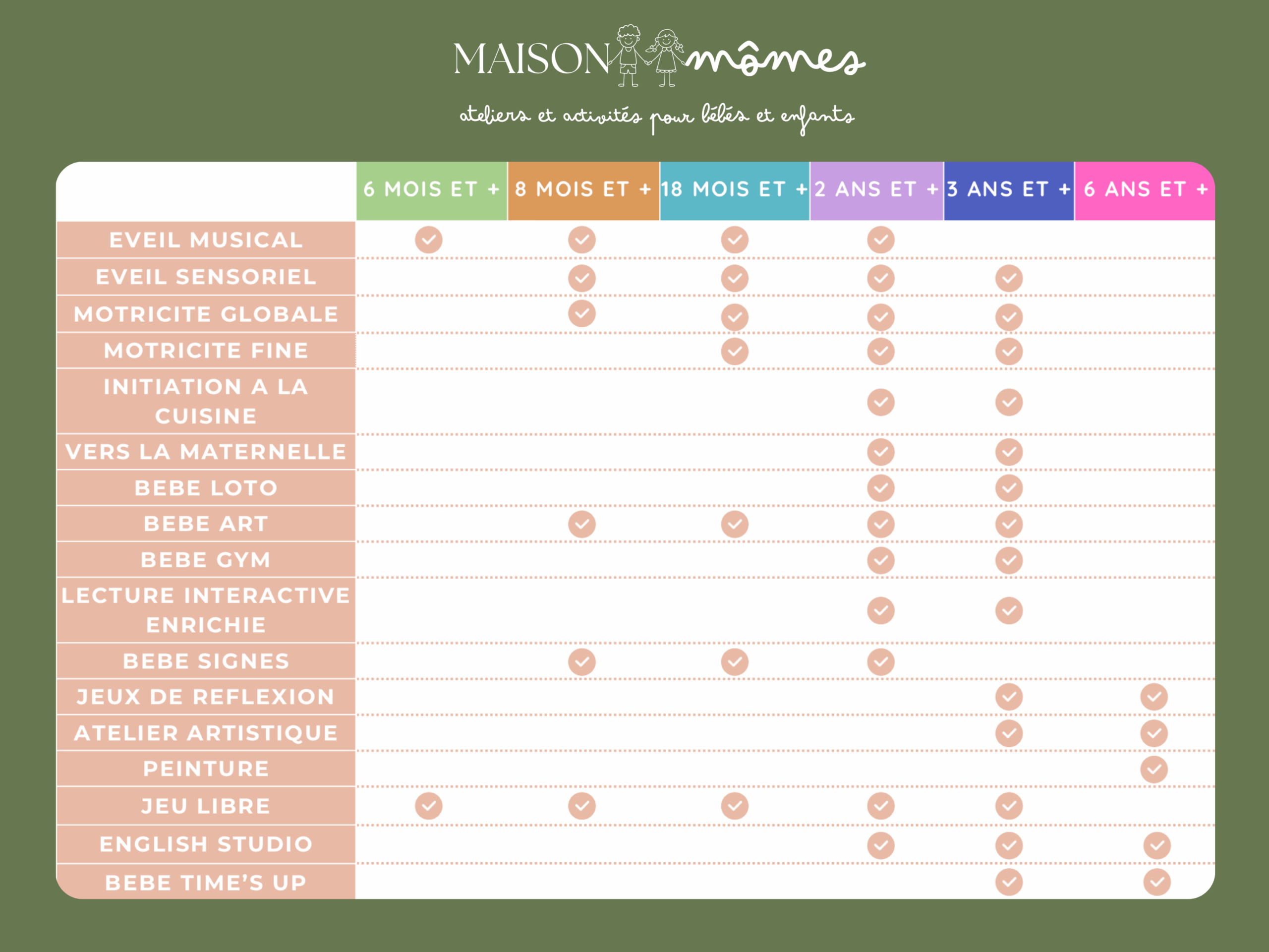 Les enfants peuvent participer aux ateliers à partir de 6 mois.
