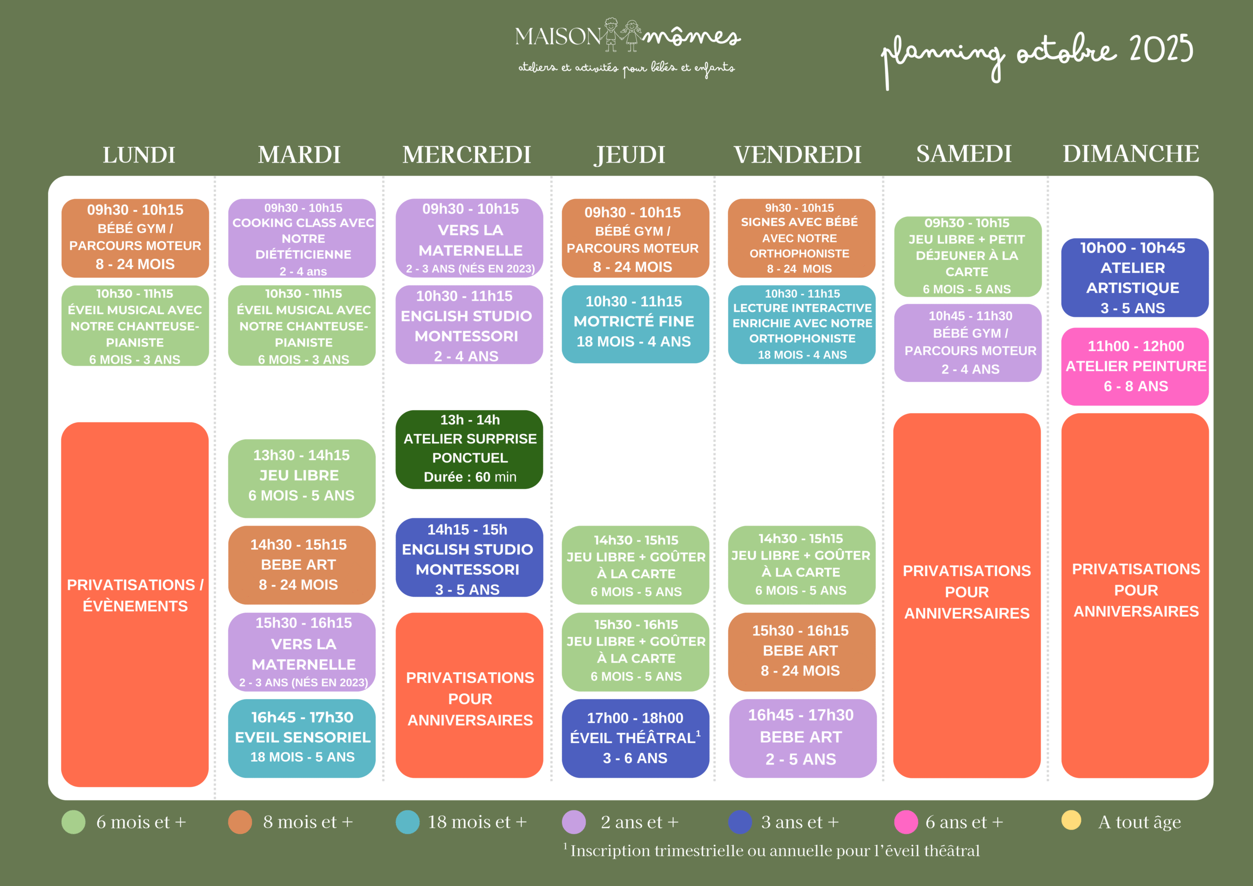 Planning des ateliers